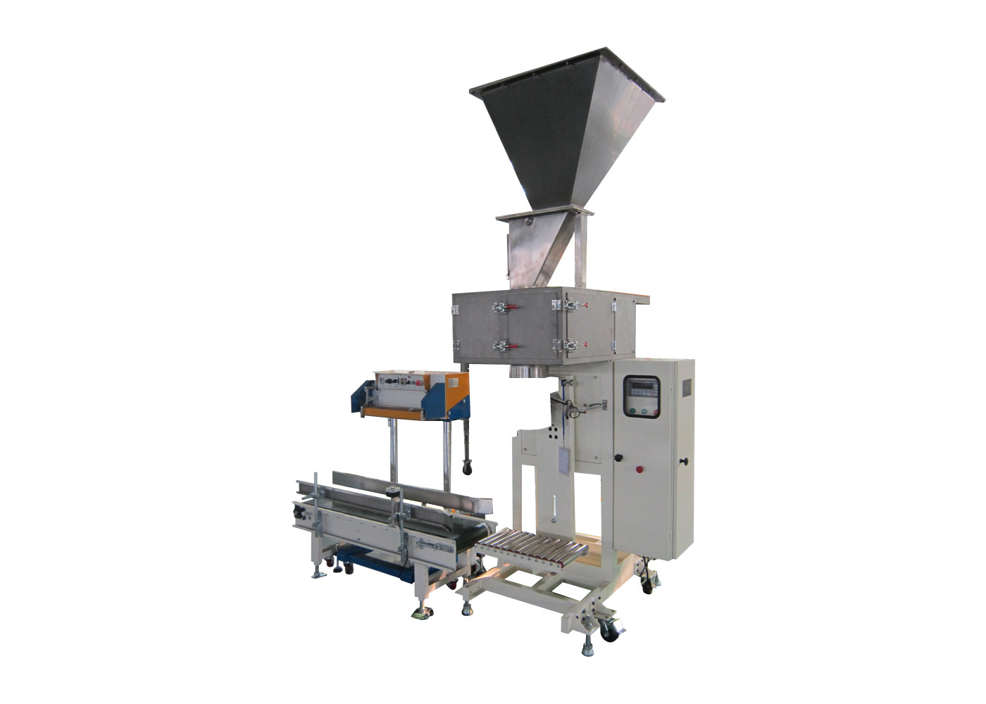 इलेक्ट्रॉनिक पैकिंग स्केल में वजन इकाई, सिलाई मशीन, संदेश उपकरण, वायवीय प्रणाली, धूल हटाने प्रणाली, मात्रात्मक पैकिंग नियंत्रण इत्यादि शामिल हैं। पूरी वजन प्रक्रिया पीएलसी द्वारा नियंत्रित होती है और स्वचालित रूप से पूरी होती है।